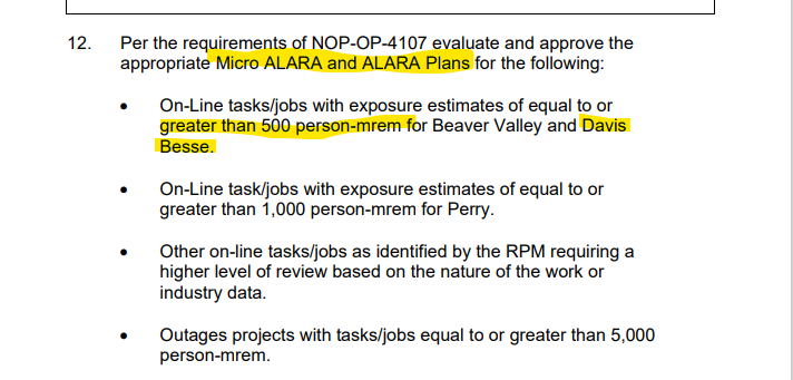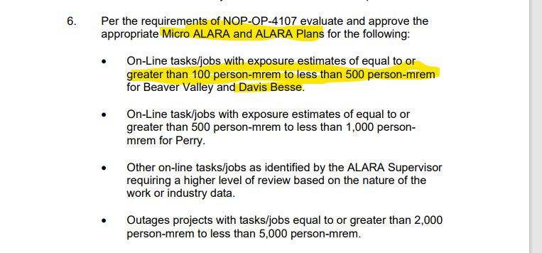 For our normal work week process, we just refer to our ALARA program procedure
