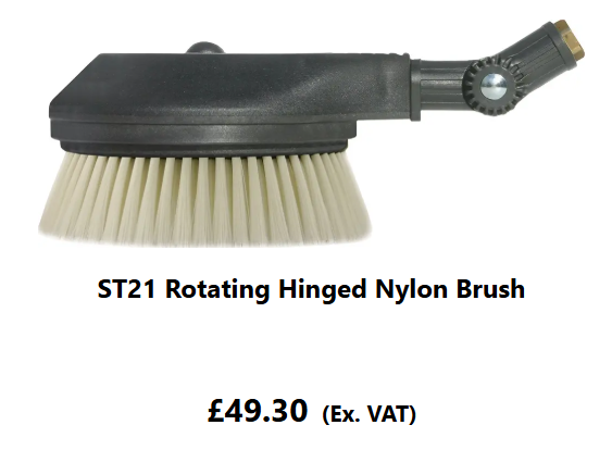 * Pressure washer lance heads topped by rotating hinged nylon brushes. We buy about 10-15 of these for an outage. Price is about $60 each (UK price shown), company is Nilfisk. Operational Experience is to secure the couplings with a suitable bonding agent (e.g. Loc-Tite) and to teach the teams to start the pressure washer spray and brush rotation away from the wall, floor or cask surface, then move the brush to the surface. Excellent decon factor.