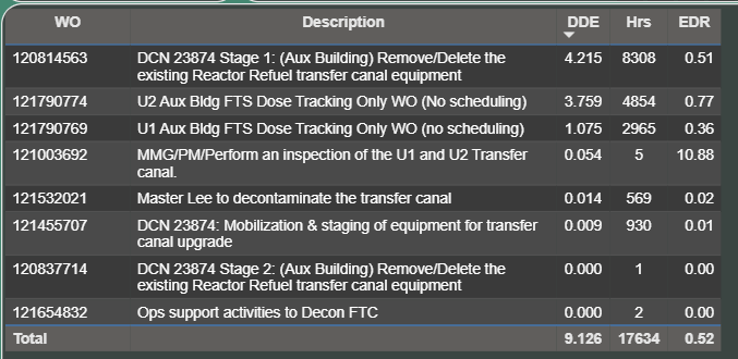 SQN performed this in 2020/2021 along with a full transfer system upgrade. Below are snippets of a survey for the cart/basket removal and an overall dose performance. I will have to dig into the dose performance to figure out what part was the actual cart & basket replacement, but off the hip it looks like 3.521 Rem and 3,883 man-hours for that portion. Also attached are the TVA removal procedure and the Framatome installation manual.